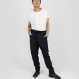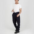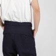 These relaxed fit trousers are made of premium wool with a curved design line. They feature a drop crotch, a waist tie closure and two back pockets.
