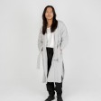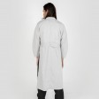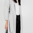 Designed with a clean shawl collar, this coat is made from an all-over subtly structured cotton fabric. A straight shape, coming in with a waist belt closure around the waist, it has 3/4 sleeves, large front patch pockets and a back pleat.