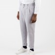 A modern design influenced by classic tailoring, these trousers are made of textured cotton with a slight stretch. A relaxed fit, the trousers come with front pleats and neat press folds, as well as a cotton lining. It has turn-up hems which are cropped above the ankle, slanted side pockets, a welt back pocket on the right and a classic zip fly.