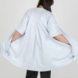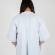 Designed with a clean collarless neckline, this kimono shaped coat is made from a tencel-mix. A boxy fit, it has 3/4 raglan sleeves, hidden pockets, side pleats and a bold fold in the back.
