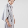 This special scarf made of firm wool includes a zipper detail from the middle down one side, which can be fully opened. The asymmetric scarf design can be styled multiple different ways, ranging from throw-over to poncho, depending on whether the zipper is opened or closed.